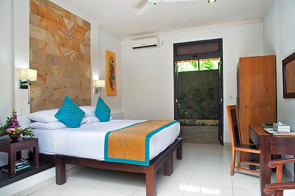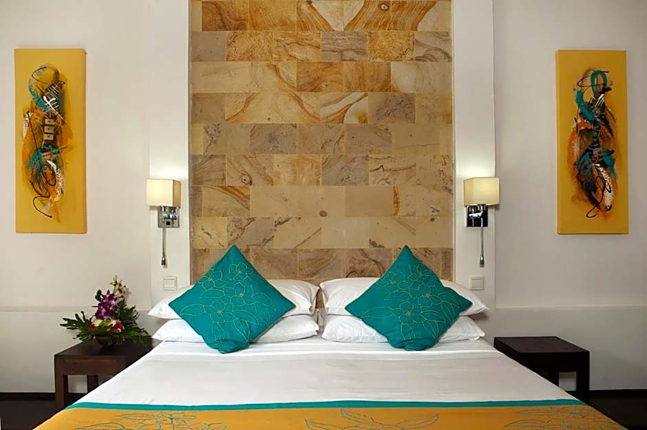 This elegant two-bedroom villa features a private outdoor swimming pool, a separate living area, dining area, and a large well-equipped kitchen. Each bedroom is air-conditioned and the private bathrooms have shower facility.